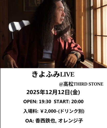 きよふみLIVE 2025年12月12日(金) open19:30 / start 20:00 入場 …