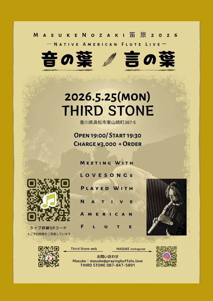 ネイティヴアメリカンフルート奏者 Masuke Nozaki 笛旅2026 ~音の葉 言の葉~