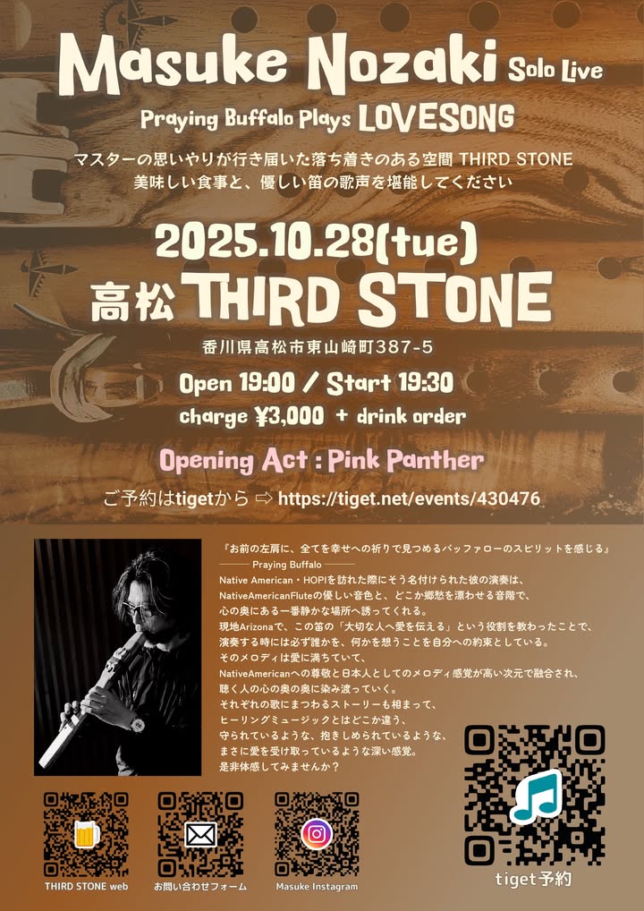 ネイティヴアメリカンフルート奏者 Masuke Nozaki solo live ~Praying Buffalo Plays LOVE SONG~